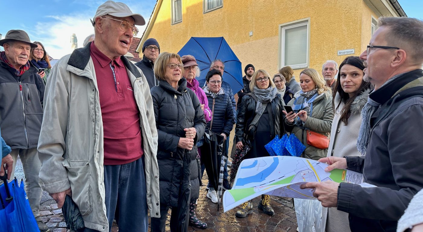 Das Interesse der Anwohner war auch beim dritten Rundgang – diesmal im Lorenzort – groß. Die Pollerlösung in der oberen Lorenzgasse kam bei den Anwohnern gut an. An das Durchfahrtsverbot beim „Lamm“, hinaus auf die Hauptstraße, würde sich indes kaum jemand halten. Hier kam die Anregung auf, den Verkehr ebenfalls per Poller zu stoppen. „Und auch der Parksuchverkehr von Kinobesuchern nervt“, sagte eine Anwohnerin und wies darauf hin, dass die Schilder für das Anwohnerparken schlicht zu klein, und an den falschen Stellen angebracht seien. Hier wünscht sie, aber auch mancher andere, eine Änderung. Horst Bisinger, Mobilitätsbeauftragter der Stadtverwaltung, nahm die Anregung gerne mit.