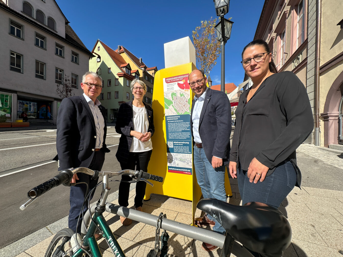 Staatssekretärin Zimmer machte sich bei ihrem Besuch vom Engagement der Stadt Rottweil ein Bild: „Rottweil möchte mit seinem Verkehrsversuch die Innenstadt attraktiver machen und die Verkehrswende voranbringen. Mit unserem Stadtmobiliar können wir die Stadt dabei auch direkt unterstützen. Unser Ziel ist es, bis 2030 deutlich mehr lebendige und verkehrsberuhigte Ortsmitten in Baden-Württemberg zu schaffen. Das erreichen wir nur gemeinsam mit den Kommunen. Wir brauchen dafür eine Verkehrsplanung, die gleichberechtigt auch die Bedürfnisse der Zu-Fuß-Gehenden und Radfahrenden berücksichtigt und so für alle die Lebens- und Aufenthaltsqualität verbessert. Diesen Weg beschreitet Rottweil mit seinem Verkehrsversuch und ich wünsche mir, dass dieses mutige Vorgehen in zahlreichen Kommunen im Land Nachahmung findet.“